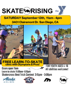 Join Exposure Skate and USA Skateboarding at the Clairemont YMCA Skatepark for a Skate Rising Experience coupled with a “Best Air” Competition on the 4th Skatercross jump!